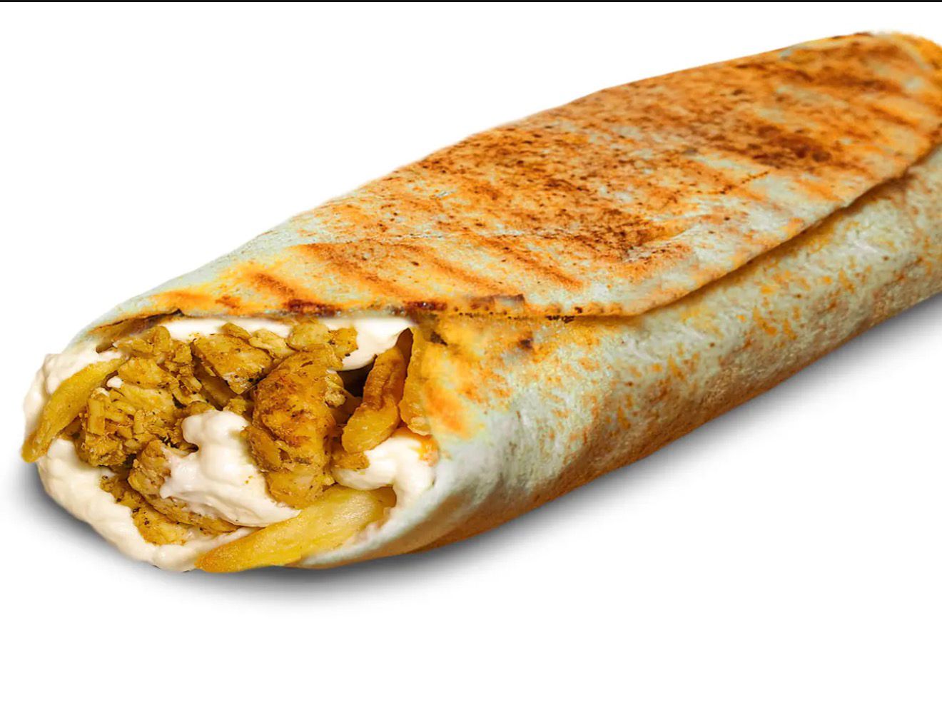 shawarma Cream Cheese Pão Sírio, Cream Cheese, batata frita e Frango grelhado temperado