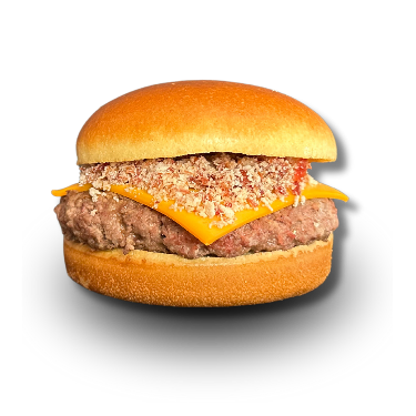 Pão de brioche, 2 smash bovino, queijo cheddar, tiras de bacon, e maionese da casa.