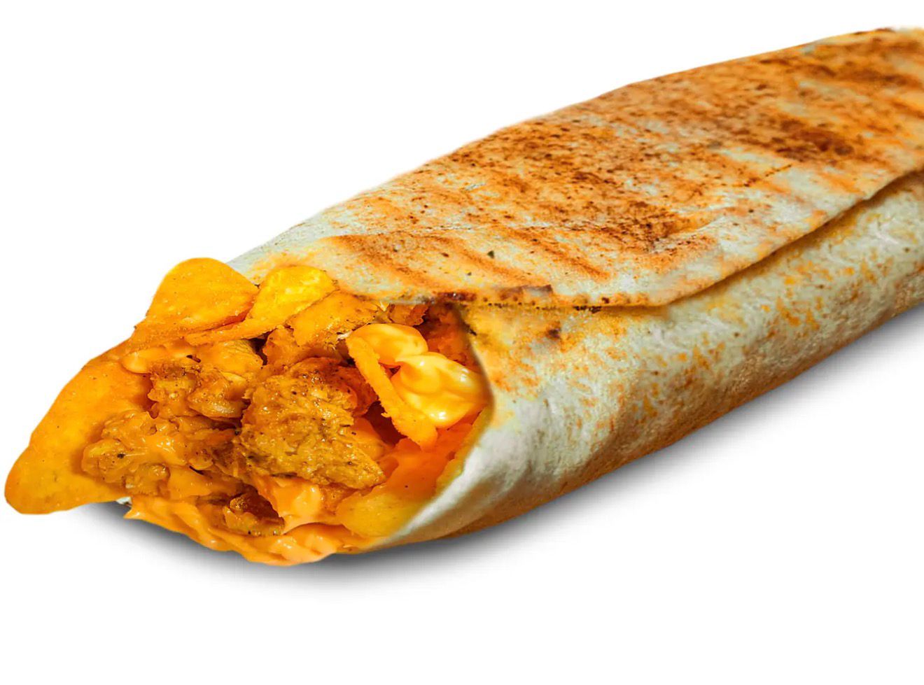 Pão Sírio, Cheddar, Doritos, batata frita e Frango grelhado temperado