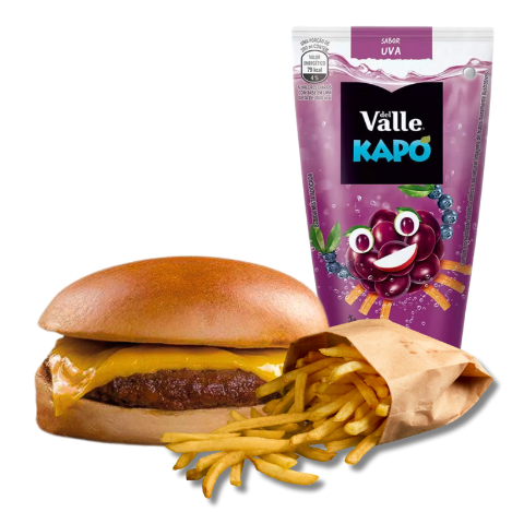 Smash Kids + Batata Frita p + Suco Del Valle Kapo.