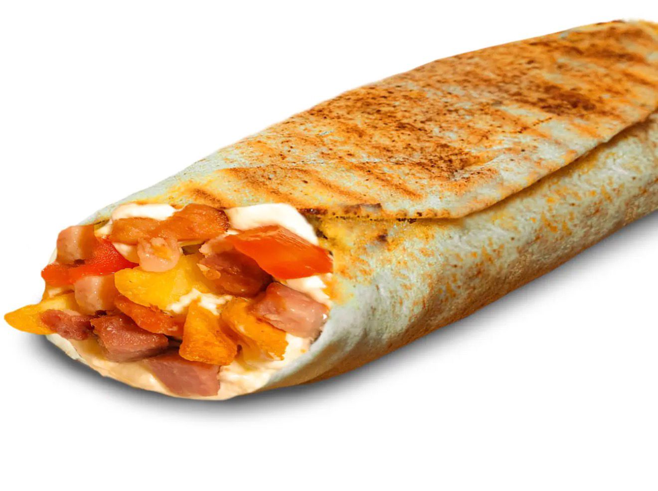 Shawarma Cheesy bacon Pão Sírio, Pasta de alho, cream cheese, bacon, batata frita, tomate